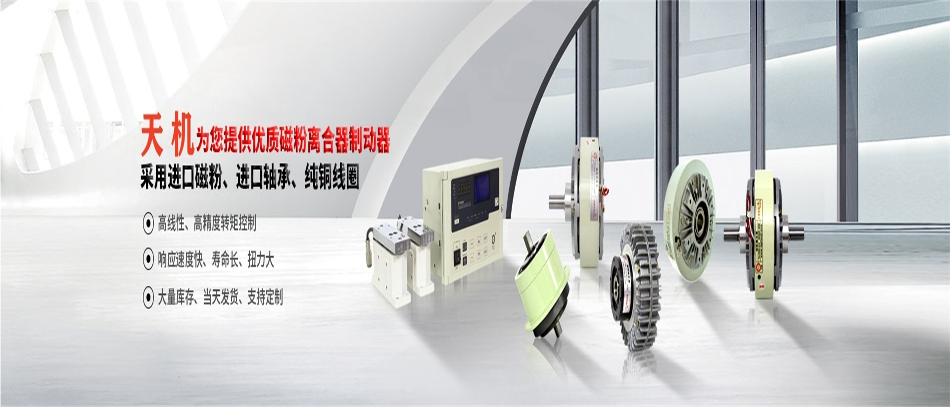 東莞天機通信科科技有限公司創建于2005年,位于廣東制造名城--東莞市,是一家專注于工業離合器、制動器的研發、生產和銷售的企業。   我們的產品包括:電磁離合器、電磁制動器、磁粉離合器、磁粉制動器、張力控制器、糾偏一體機、氣脹軸,安全夾頭等。